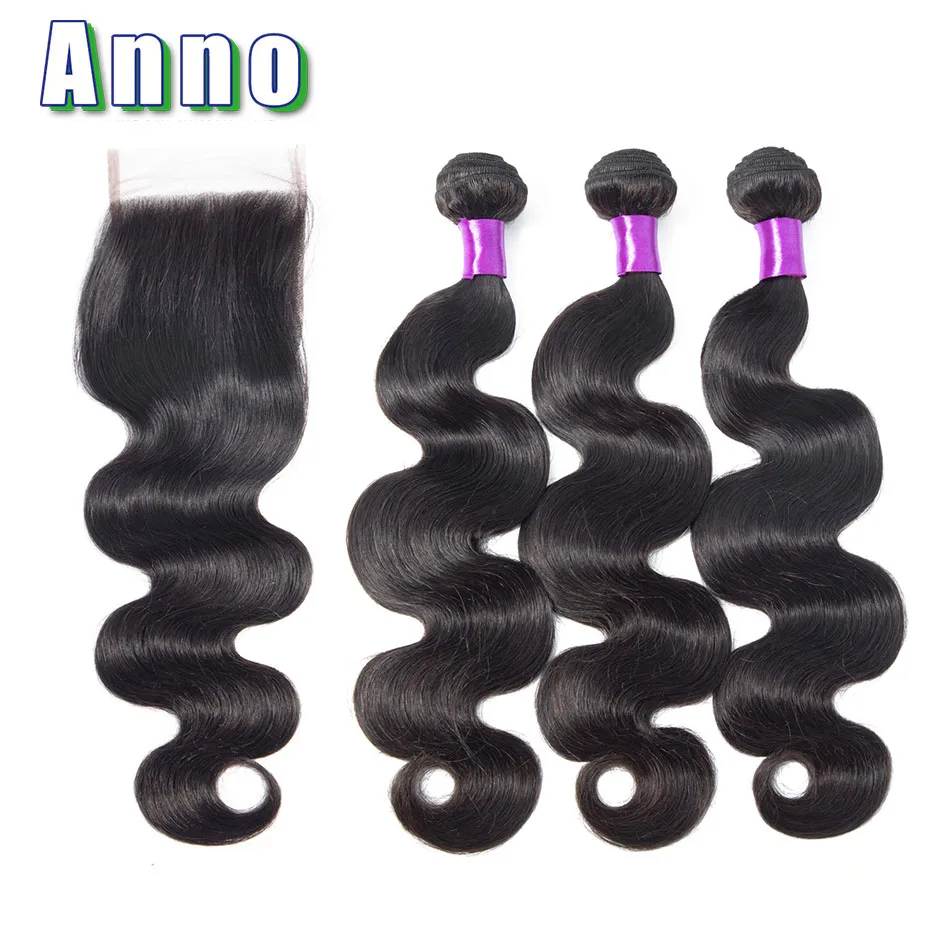 Good Offer of Annowig Human Hair Body Wave 3 Bundles With Closure 4*4 Lace Closure With Bundles Natural Color Malaysia Human Hair Extensions